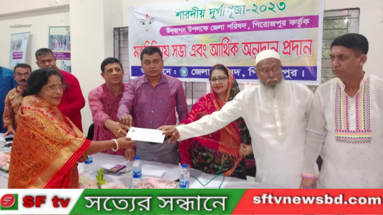 পিরোজপুর কাউখালী উপজেলায় জেলা পরিষদের উদ্যোগে, "শারদীয় দূর্গা পূজা -২০২৩ উদযাপন" উপলক্ষে -- বৃহস্পতিবার উপজেলা সভা কক্ষে ৫টি ইউনিয়নের ২৬ টি পূজা মন্ডব কমিটির সদস্য এবং স্থানীয় নেতৃবৃন্দের উপস্থিতিতে মতবিনিময় সভা ও আর্থিক নগদ ১০০০/ টাকা অনুদান প্রদান করা হয়।