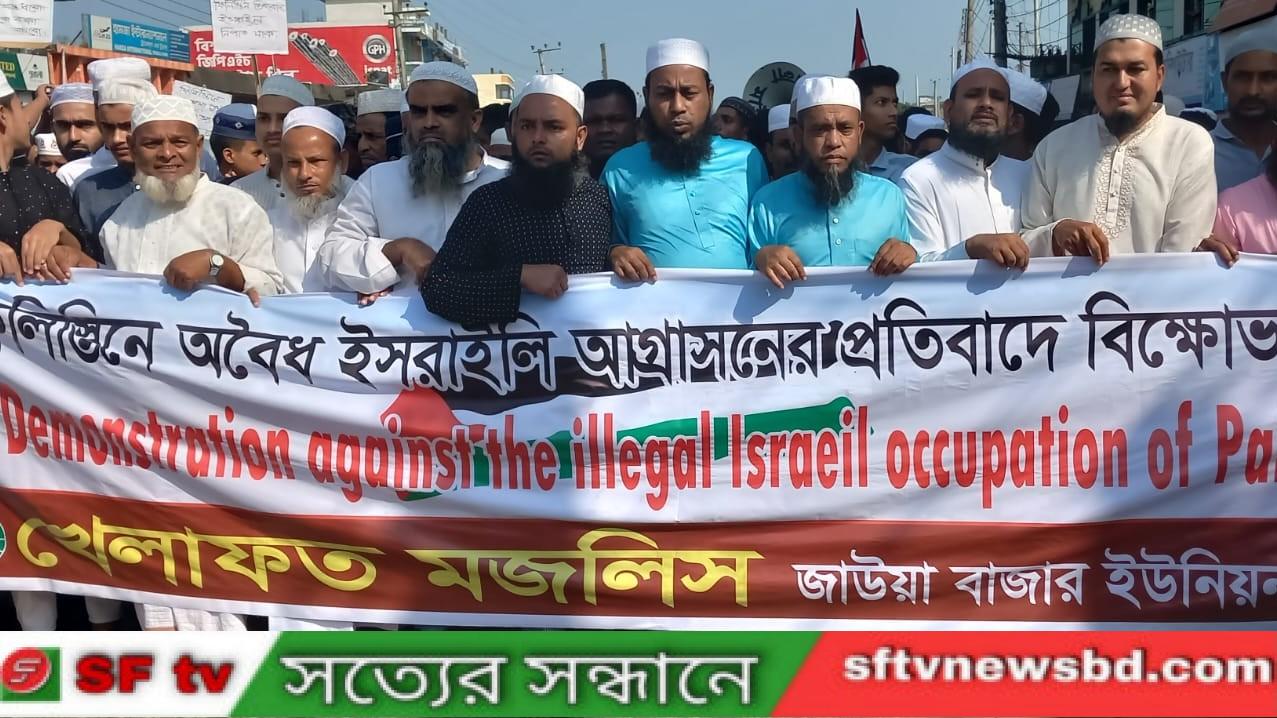 সুনামগঞ্জ ছাতকের জাউয়াবাজারে ইসরাইলী আগ্রাসনের প্রতিবাদে খেলাফত মজলিসের বিক্ষোভ মিছিল অনুষ্ঠিত হয়েছে।শুক্রবার (২০ অক্টোবর) বাদ জুম্মা উপজেলার জাউয়া বাজার মসজিদের প্রাঙ্গণ থেকে ইউনিয়ন খেলাফত মজলিসের পক্ষ থেকে বিক্ষোভ মিছিল অনুষ্ঠিত হয়।