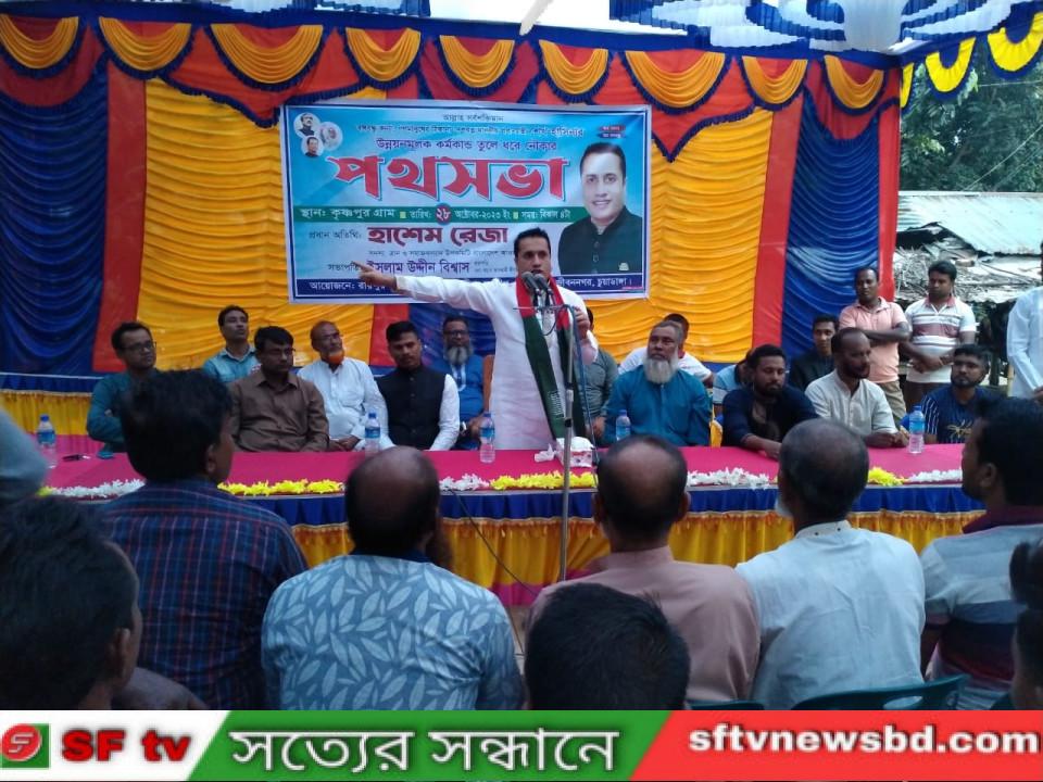 মোঃ আব্দুল্লাহ হক চুয়াডাঙ্গা: চুয়াডাঙ্গা জেলার জীবননগর উপজেলার রায়পুর ইউনিয়নের কৃষ্ণপুর গ্রামে বঙ্গবন্ধু কন্যা গনমানুষের ঠিকানা দেশরত্ন মাননীয় প্রধানমন্ত্রী শেখ হাসিনার উন্নয়নমূলক কর্মকাণ্ড তুলে ধরে রায়পুর ইউনিয়নের আওয়ামী লীগ যুবলীগ ছাত্রলীগের আয়োজনে পথসভা ও সমাবেশে প্রধান অতিথির বক্তব্য দেন চুয়াডাঙ্গা ২ আসনের নৌকার মনোনয়ন প্রত্যাশী হাশেম রেজা, গতকাল শনিবার ২৮ অক্টোবর জীবননগর উপজেলার রায়পুর ইউনিয়নের কৃষ্ণপুর গ্রামে বিভিন্ন শ্রেনী পেশার মানুষের উপস্থিতিতে অনুষ্ঠিত পথসভায় প্রধান অতিথি হিসেবে বক্তব্য রাখেন চুয়াডাঙ্গা ২ আসনের নৌকার মনোনয়ন প্রত্যাশী দৈনিক আমার সংবাদ ও দা ডেইলি পোস্ট পত্রিকার সম্পাদক ও প্রকাশক এবং কেন্দ্রীয় আওয়ামী লীগের ত্রাণ ও সমাজকল্যাণ উপকমিটির সদস্য হাশেম রেজা।