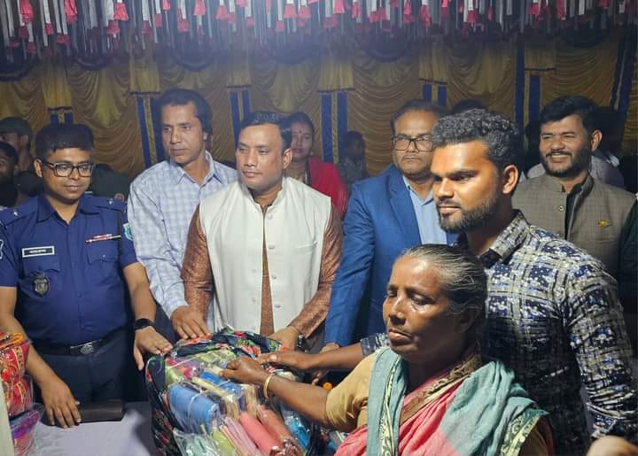 ঠাকুরগাঁওয়ে আদিবাসী নারী সহ অন্যান্য ধর্মের মানুষের মাঝে বস্ত্র বিতরণ