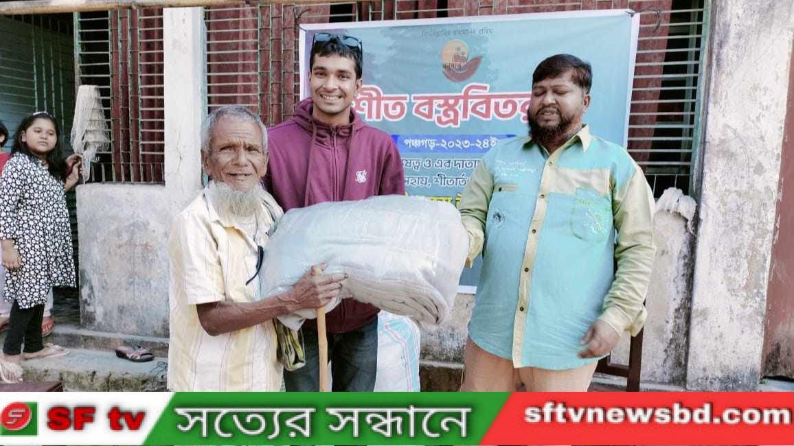 দেবীগঞ্জ উপজেলায় অসহায় শীতার্ত মানুষের মাঝে কম্বল বিতরণ করেন।