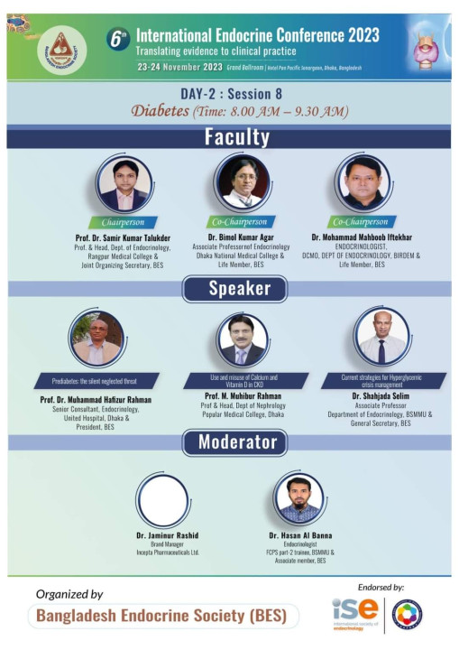 এ মহাসম্মেলনের একটি পর্বের সন্ঞ্চালক হিসেবে দায়িত্ব প্রাপ্ত হওয়ার বাংলাদেশ এন্ডোক্রাইন সোসাইটির পরিচালনা পর্ষদের প্রতি কৃতজ্ঞতা প্রকাশ করছি।