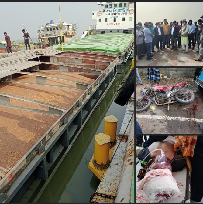 পিরোজপুর কাউখালী নদীতে সংঘর্ষে ডাল সহ কার্গো জাহাজ ডোবার উপক্রম এবং সড়ক দুর্ঘটনায় আহত-৪ মৃত -১