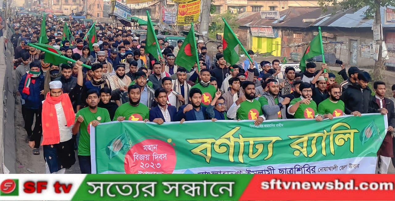 ৫৩তম বিজয় দিবস উদযাপন উপলক্ষ্যে শিবিরের উক্ত বর্ণাঢ্য র্যালিতে নোয়াখালী জেলা উত্তরের নেতৃবৃন্দ উপস্থিত ছিলেন।--