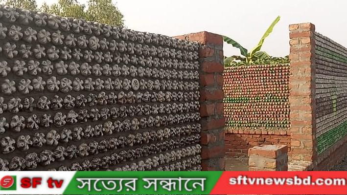 প্লাস্টিকের বোতল দিয়ে পরিবেশবান্ধব বাড়ি তৈরি করে এলাকায় বেশ সাড়া ফেলেছেন ঠাকুরগাঁওয়ের বালিয়াডাঙ্গী উপজেলার ১ নং পাড়িয়া ইউনিয়নের জসিম উঊদ্দিন (৫০)। ফেলে দেওয়া কোমল পানীর প্লাস্টিকের বোতল দিয়ে দৃষ্টিনন্দন বাড়ি তৈরি করছেন জসিম উদ্দিন । জসিম উদ্দিন ঠাকুরগাঁওয়ের বালিয়াডাঙ্গী উপজেলার ১ নং পাড়িয়া ইউনিয়নের রায়মোহল গ্রামের বাসিন্দা। পরিবেশ দূষণকারী প্লাস্টিকের বোতলে বালু ভর্তি করে সিমেন্ট দিয়ে পরিবেশবান্ধব এই বাড়ি তৈরি করছেন তিনি। তার বাড়িটি এখন আশপাশের অনেক মানুষ