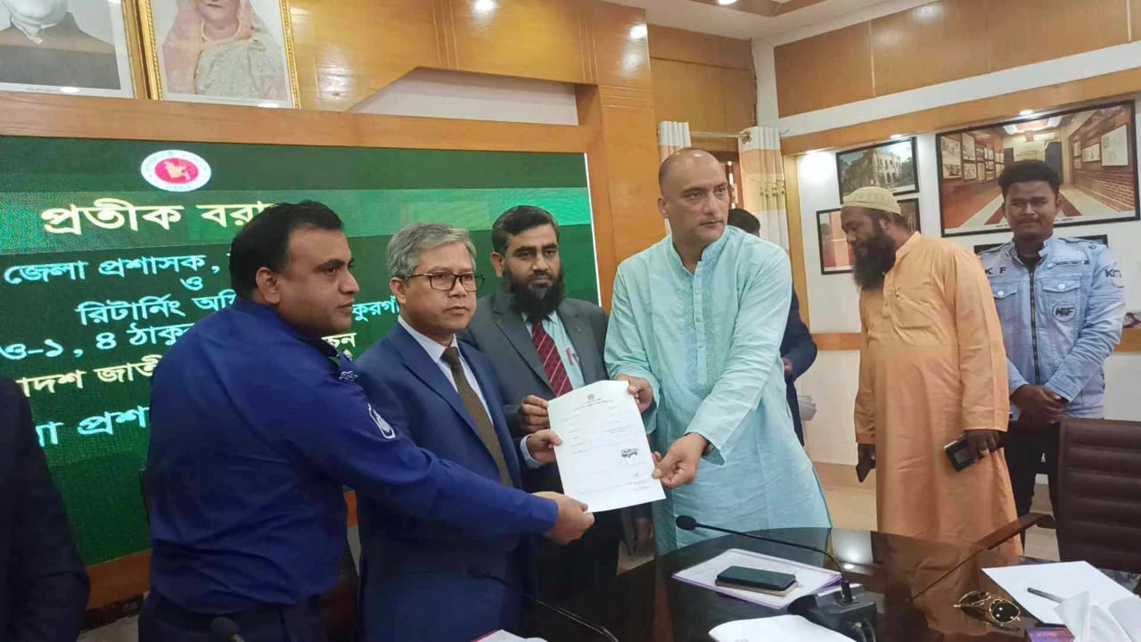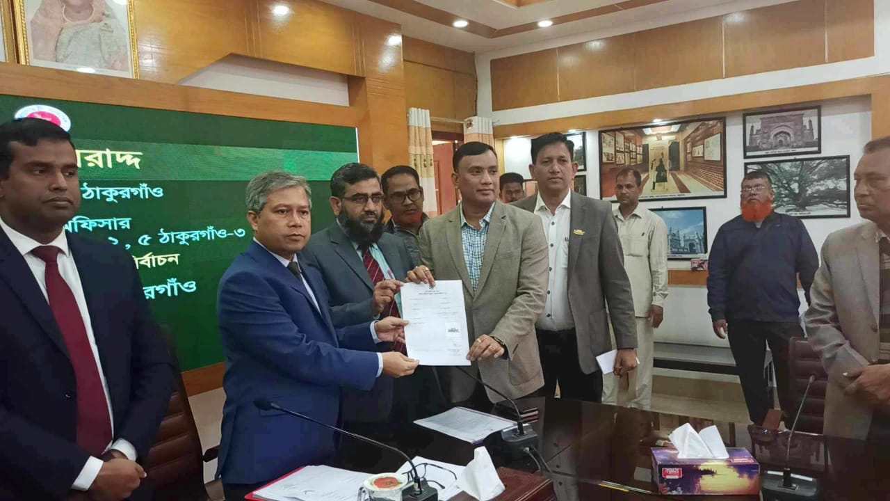 সোমবার (১৮ ডিসেম্বর) সকাল সাড়ে ১০ টা থেকে থেকে দুপুর সাড়ে ১২ টা পর্যন্ত ঠাকুরগাঁওয়ের জেলা প্রশাসক ও জেলা রিটার্নিং কর্মকর্তা মো. মাহবুবুর রহমান প্রতীক বরাদ্দ করেন।
