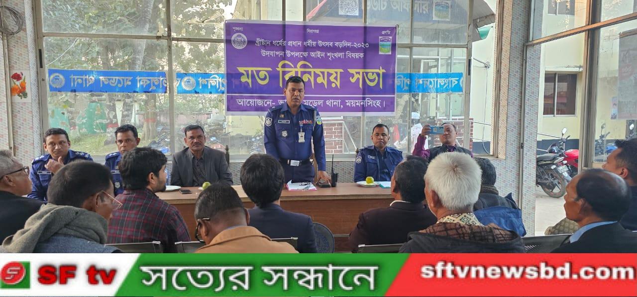 আজ বিকেল ৩টায় থানা কমপ্লেক্সে এই মতবিনিময় সভা অনুষ্ঠিত হয়। ময়মনসিংহ জেলার পুলিশ সুপার মাছুম আহাম্মদ ভুঞা দিকনির্দেশনায়