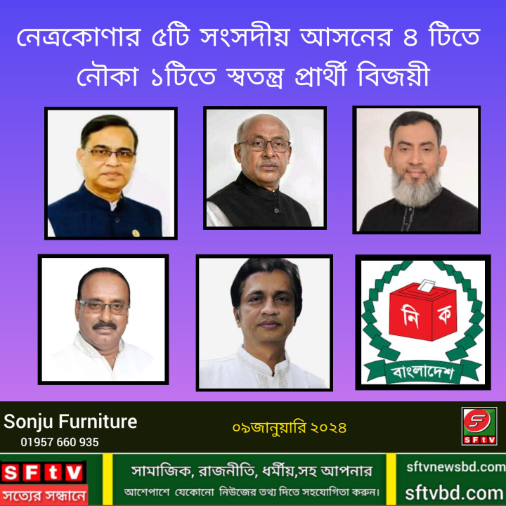 নেত্রকোণার ৫টি সংসদীয় আসনের মধ্যে ৪টিতে নৌকা ও ১টিতে স্বতন্ত্র প্রার্থী বিজয়ী হয়েছে।