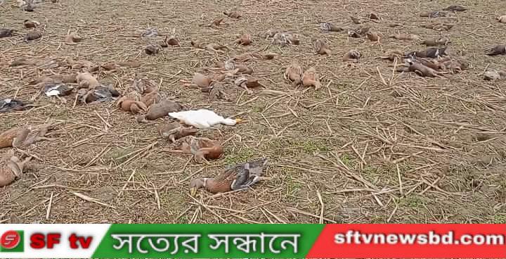 ঠাকুরগাঁওয়ের বালিয়াডাঙ্গী উপজেলায় খামারে ৭০০ হাঁসের মৃত্যুতে দিশেহারা হয়ে পড়েছেন জাহেরুল ইসলাম। ১৫ মিনিটের ব্যবধানে তার সব হাঁসের মৃত্যু হয় মঙ্গলবার (১৬ জানুয়ারি) উপজেলার ভানোর ইউনিয়নের দিঘীরকোণ গ্রামে এ সব হাঁসের মৃত্যু হয়। এতে ২ লক্ষাধিক টাকা ক্ষতি হয়েছে বলে জানিয়েছেন জাহেরুল। খামারি জাহেরুল ইসলাম জানান, শীতের কারণে হাঁসগুলো সকালে একটু দেরিতে ছাড়া হয়। ঘটনার দিন সকাল সাড়ে ১১টায় হাঁসগুলোকে ছেড়ে দেয়া হয় মাঠে যাওয়ার জন্য। মাঠে পৌঁছানোর ১৫ মিনিটের মধ্যে তার ৭ শতাধিক হাঁস মারা যায়। পেছনে থাকা হাঁসগুলো কোনোমতে খামারে ফিরিয়ে আনেন। নাহলে বাকি হাঁসগুলোও মারা যেত। তিনি আরও জানান, তার খামারে এক হাজারের বেশি হাঁস ছিল। এর মধ্যে ২৯০টি হাঁস ফেরত আনতে পেরেছেন। ওই খামারির প্রতিবেশী ব্যবসায়ী শহিদুল ইসলাম জানান, তিনি হাঁসের মৃত্যুর খবর শুনে মাঠে যান। সেখানে প্রচুর মৃত হাঁস দেখতে পান। পরে জাহেরুল ইসলাম গুনে দেখেন ২৯০টি হাঁস বাঁচাতে পেরেছেন। তার সাত শতের বেশি হাঁস মারা গেছে। শহিদুল খামারিকে মৃত হাঁসগুলো মাটিতে পুঁতে ফেলার পরামর্শ দেন। খামারি জাহেরুল ধারণা করছেন, কে বা কারা মাঠের মাঝখানে বিষযুক্ত ধান ছিটিয়ে রাখে। সেগুলো খাওয়ার পরে হাঁসগুলো মারা গেছে। যার মূল্য ২ লক্ষাধিক টাকা। গর্ত খুঁড়ে মৃত হাসগুলো পুতে ফেলা হয়েছে জানান জাহেরুল ইসলাম।