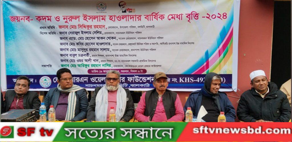 ঝালকাঠি জেলার নলছিটি উপজেলার নাচনমহল ইউনিয়নে মেধাবী শিক্ষার্থীদের মেধাবৃত্তি ও শিক্ষা উপকরণ দিয়েছে জেকে.আর.এন ওয়েল ফেয়ার ফাউন্ডেশন।