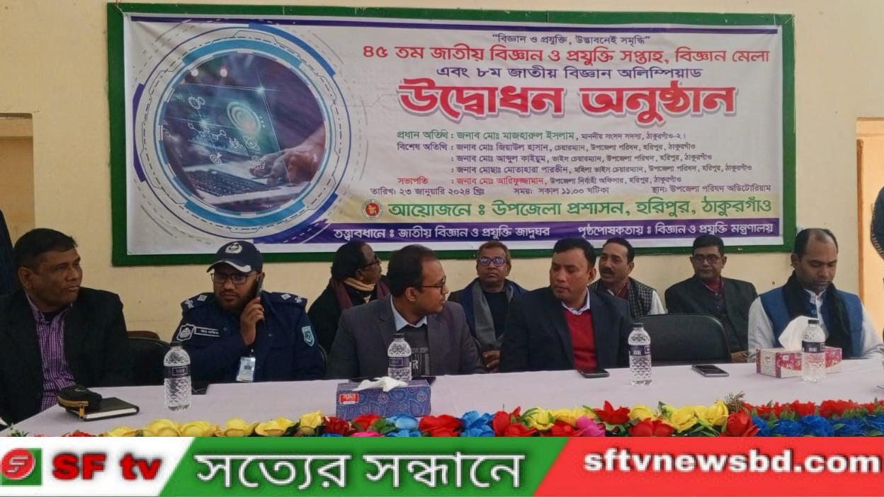 "বিজ্ঞান ও প্রযুক্তি, উদ্ভাবনেই সমৃদ্ধি" স্লোগানে, ঠাকুরগাঁওয়ের হরিপুরে উপজেলা প্রশাসনের উদ্যোগে ৪৫তম জাতীয় বিজ্ঞান ও প্রযুক্তি সপ্তাহ বিজ্ঞান মেলা এবং ৮ম জাতীয় বিজ্ঞান অলিম্পিয়াড মেলার উদ্বোধন অনুষ্ঠিত হয়েছে।
