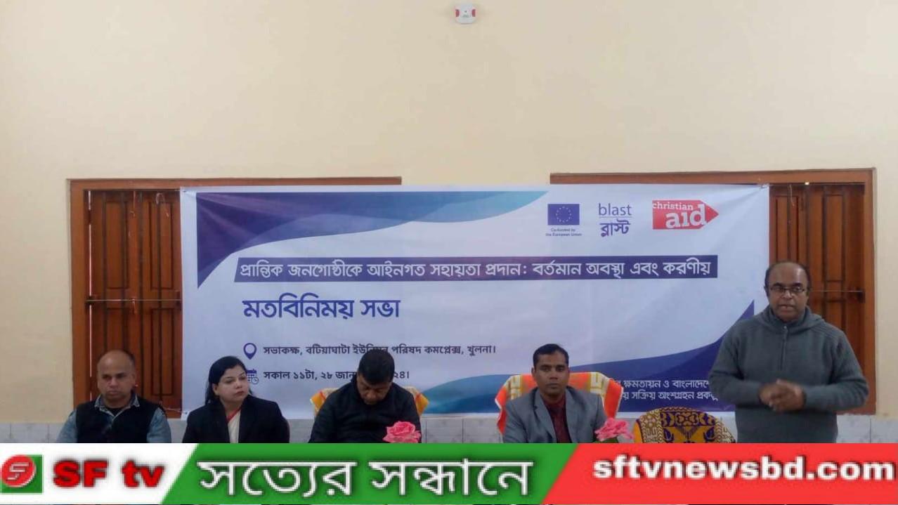 খুলনার বটিয়াঘাটায় ব্লাস্ট আয়োজিত জেলা লিগাল এইড এর সাথে মতবিনিময় সভা বটিয়াঘাটা ইউনিয়ন সন্মেলন কক্ষে সকাল ১১ টায় অনুষ্ঠিত হয়।