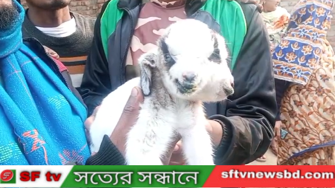 রানীশংকৈলে দুটি মুখ ও চারটি চোখ নিয়ে জন্ম নিল একটি ছাগলের বাচ্চা