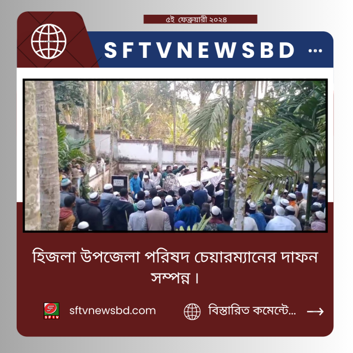 বরিশালের হিজলা উপজেলা পরিষদের চেয়ারম্যান, আলহাজ্ব বেলায়েদ হোসেন ঢালীর নামাজে জানাজা ও দাফন সম্পন্ন হয়েছে।