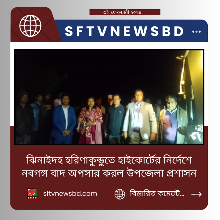 ১৪ ডিসেম্বর ২০২৩( বাসস) ঝিনাইদহ প্রবহমান নবগঙ্গা নদীতে আড়াআড়ি দেয়া মাটির বাদ দিয়া অপসারণের নির্দেশ দিয়েছে হাইকোর্ট, একই সঙ্গে সীমানা জরিপ করে করে দখলদারিদের তালিকা দাখিল করতে জেলা প্রশাসনের নির্দেশ প্রদান করে হাইকোর্ট সেই ধারাবাহিকতা ৫/২/২০২৪ ইং রোজ সোমবার রাত ৯ টার দিকে হরিণাকুন্ডু উপজেলার সোনাতনপুর নবগঙ্গা নদীর বাধ উচ্ছেদ অভিজান পরিচালনা করেন হরিণাকুন্ডু উপজেলা নির্বাহী অফিসার আক্তার উজ্জামান, এসময় উপস্থিত ছিলেন হরিণাকুন্ডু সহকারী কমিশনার ভূমি নিরুপমা রায়,দুইটি ভেকু গাড়ি দিয়ে এই উচ্ছেদ অভিজান পরিচালনা করা হয়,অভিজান পরিচালনা করার সময় সহয়তা করেন সোনাতনপুর পুলিশ ক্যাম্পের এস আই চঞ্চল, এ এস আই রেজাওয়ন সহ পুলিশ সদস্যগন। হরিণাকুন্ডু উপজেলা নির্বাহী অফিসার জানাইজনস্বার্থে আনা এক রিটের প্রাথমিক শুনানি নিয়ে বিচারপতি মোস্তফা জামান ইসলাম ও বিচারপতি মো. আতাবুল্লাহর সমন্বয়ে গঠিত হাইকোর্ট ডিভিশন বেঞ্চ আজ এ আদেশ দেয়।সম্প্রতি জাতীয় দৈনিকে বিষয়টি নিয়ে প্রতিবেদন প্রকাশিত হয়। ওই প্রতিবেদনে বলা হয়, ঝিনাইদহে প্রবহমান নবগঙ্গা নদীর আড়াই কিলোমিটারে সাত জায়গায় আড়াআড়ি মাটির বাঁধ দিয়ে মাছ চাষ করা হচ্ছে। স্থানীয়দের অভিযোগ, নদীর ওই অংশের শ্রেণি পরিবর্তন করে চাঁদপুর বাঁওড় নামকরণ করা হয়েছে। এরপর ইজারা নিয়ে সেখানে মাছ চাষ করা হচ্ছে। এর সঙ্গে স্থানীয় প্রভাবশালী ব্যক্তিরা জড়িত। নবগঙ্গা নদীটি জেলার হরিণাকু-র হামিরহাটি, চাঁদপুর, হাকিমপুর ও সদর উপজেলার জাড়গ্রাম অংশে ইংরেজি অক্ষর ‘ইউ’ আকৃতি ধারণ করে ঝিনাইদহ শহরের দিকে প্রবাহিত হয়েছে। ইউ আকৃতির দৈর্ঘ্য প্রায় আড়াই কিলোমিটার। এর মাঝ বরাবর পড়েছে জাড়গ্রাম। জাড়গ্রামের তিন পাশ দিয়ে প্রবাহিত ছিল নদীটি। এখানে নদীর সাত জায়গায় মাটির বাঁধ নির্মাণ করা হয়েছে।প্রকাশিত প্রতিবেদন যুক্ত করে পরিবেশবাদী ও মানবাধিকার সংগঠট হিউম্যান রাইটস অ্যান্ড পিস ফর বাংলাদেশের (এইচআরপিবি) পক্ষে জনস্বার্থে রিটটি করা হয়। রিটের পক্ষে শুনানি করেন সিনিয়র আইনজীবী মনজিল মোরসেদ।এডভোকেট মনজিল মোরশেদ জানান, সব বাঁধ অপসারণ, দখলকারীদের বিরুদ্ধে আইনগত ব্যবস্থা, ভবিষ্যতে যাতে দখল করতে না পারে এবং সিএস/আরএস অনুসারে নদীর হামিরহাটি, চাঁদপুর, হাকিমপুর, জাড়গ্রাম অংশে জরিপ কর ও দখলকারীদের তালিকা করতে নির্দেশ দিয়েছেন আদালত। ৬০ দিনের মধ্যে তা দাখিলের নির্দেশ দেয়া হয়েছে।