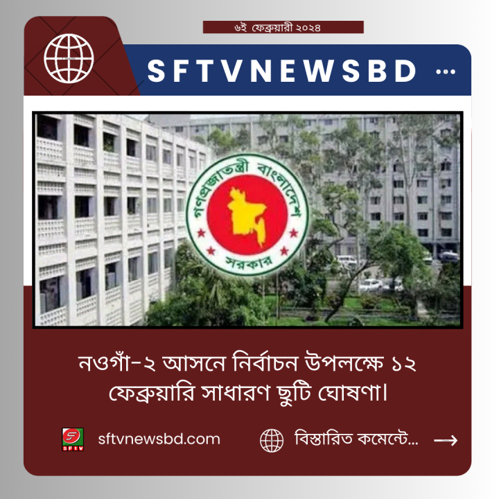 নওগাঁ-২ আসনে নির্বাচন উপলক্ষে ১২ ফেব্রুয়ারি সাধারণ ছুটি ঘোষণা।