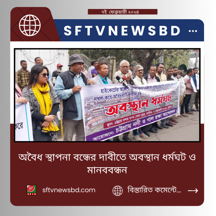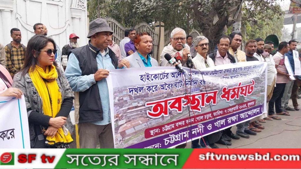 হাইকোর্টের আদেশ অমান্য করে চট্টগ্রাম বন্দর কর্তৃপক্ষ কর্ণফুলী নদী দখল করে অবৈধ স্থাপনা বন্ধের দাবীতে অবস্থান ধর্মঘট ও মানববন্ধন
