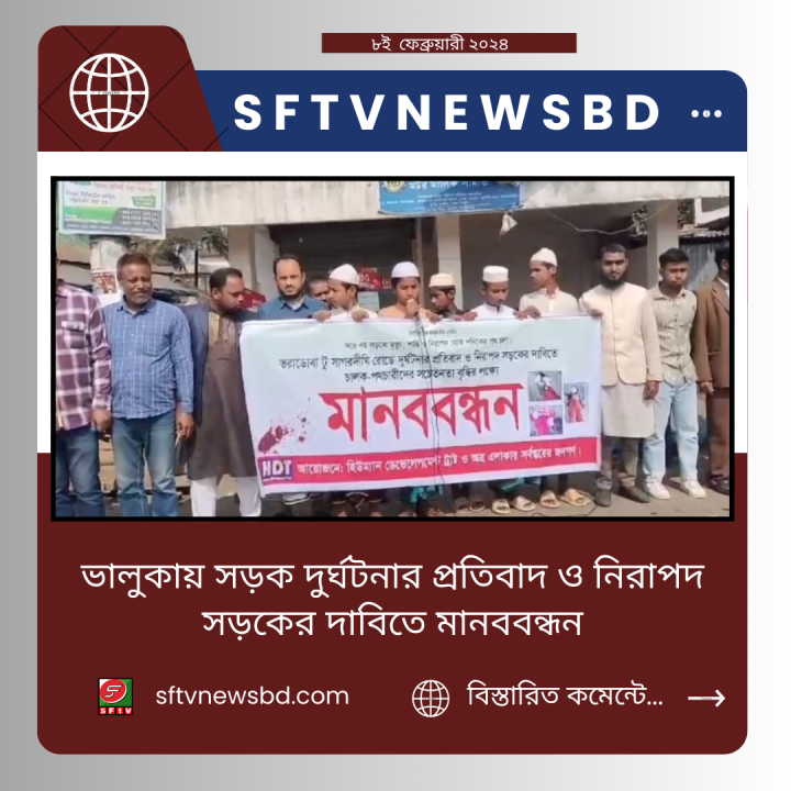ভালুকায় সড়ক দুর্ঘটনার প্রতিবাদ ও নিরাপদ সড়কের দাবিতে মানববন্ধন