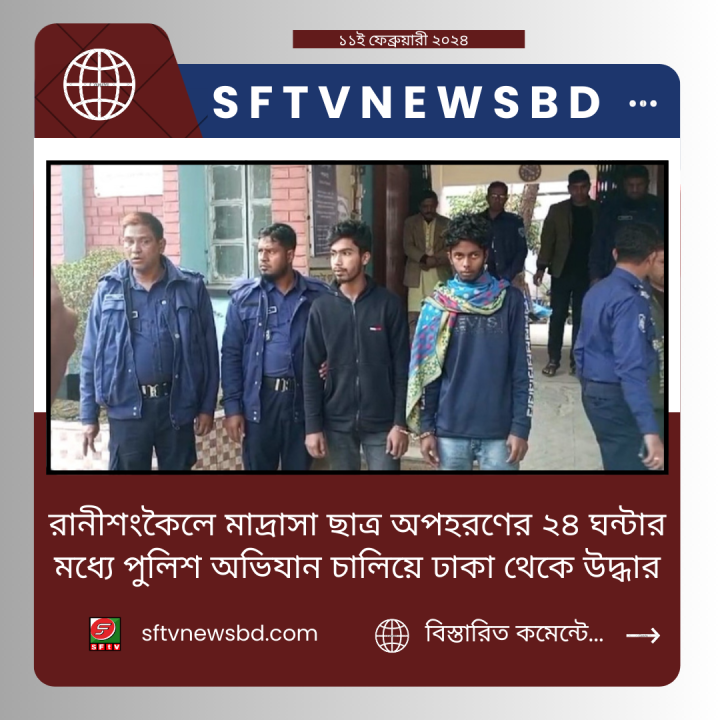 রানীশংকৈলে মাদ্রাসা ছাত্র অপহরণের ২৪ ঘন্টার মধ্যে পুলিশ অভিযান চালিয়ে ঢাকা থেকে উদ্ধার