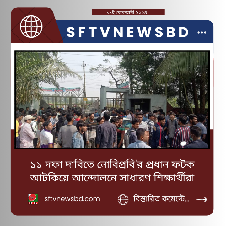 ১১ দফা দাবিতে নোবিপ্রবি’র প্রধান ফটক আটকিয়ে আন্দোলনে সাধারণ শিক্ষার্থীরা