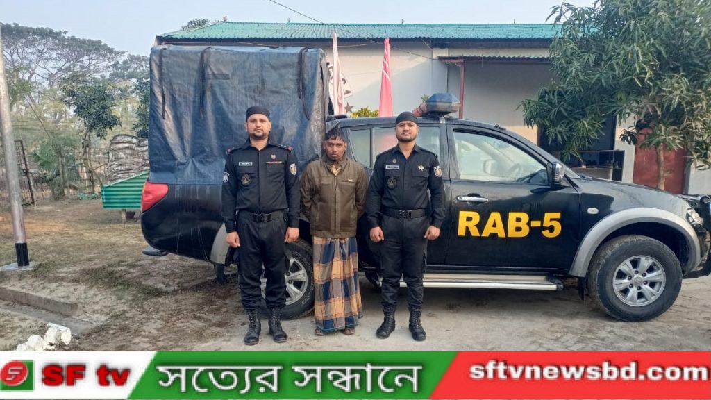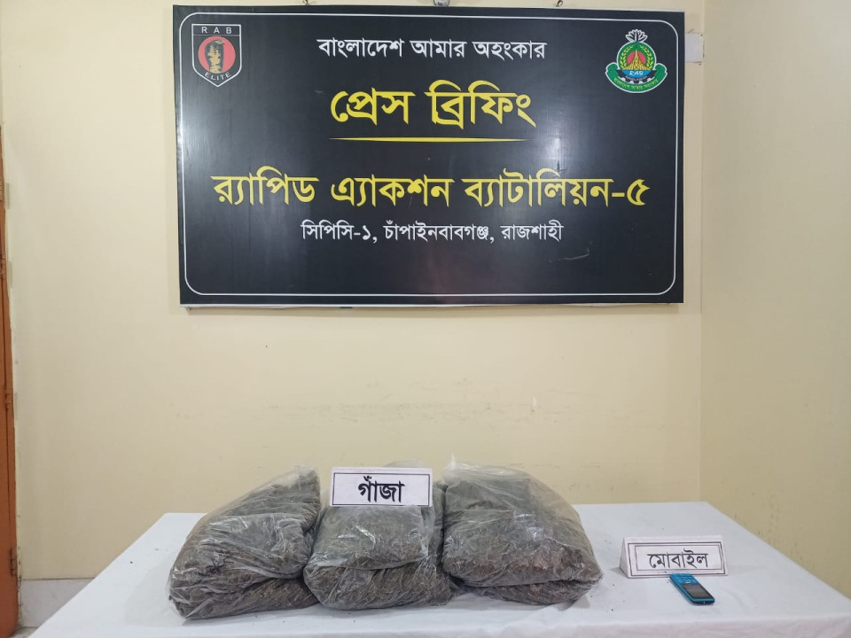 এক পর্যায়ে সে সীমান্তবর্তী এলাকা থেকে গাঁজা সংগ্রহ করে চাঁপাইনবাবগঞ্জে আসতেছে মর্মে এমন সংবাদের ভিত্তিতে র্যাব এর একটি চৌকস আভিজানিক দল চাঁপাইনবাবগঞ্জ সদরের মহানন্দা টোল প্লাজার সামনে পূর্ব পরিকল্পনা মোতাবেক চেকপোস্ট স্থাপন করে তল্লাশি কার্যক্রম পরিচালনা করার সময় অভিনব কায়দায় গাঁজা বহন করে অন্যত্র যাওয়ার প্রাক্কালে আভিযানিক দলের নিকট উক্ত আসামি হাতেনাতে আটক হয়। ১১ ফেব্রæয়ারি ২০২৪ ইং তারিখ সকাল ০৭:০০ ঘটিকায় চাঁপাইনববাগঞ্জ জেলার সদর থানার অন্তর্গত মহানন্দা টোল প্লাজার সামনে অভিযান পরিচালনা করে অভিনব কায়দায় মাদক বহনের সময় আসামী ১। মোঃ জুয়েল (২৫), পিতা-মোঃ খলিলুর রহমান, মাতা-মোছাঃ রুবিআরা বেগম, সাং-বিশ্বনাথপুর (বাখের আলী), ইউপি-বিনোদপুর, থানা-শিবগঞ্জ, জেলা-চাঁপাইনবাবগঞ্জ’কে গ্রেফতার করে। উপরোক্ত ঘটনায় চাঁপাইনবাবগঞ্জ জেলার সদর থানায় মামলা রুজু করা হয়েছে।