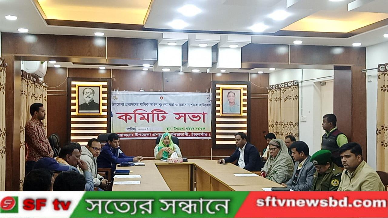 ঠাকুরগাঁওয়ের বালিয়াডাঙ্গী উপজেলা প্রশাসনের উদ্যোগে আজ (১২ ফেব্রুয়ারি) ১২ টার সময় সোমবার উপজেলা পরিষদ সম্মেলন কক্ষে আইন শৃঙ্খলা ও সন্ত্রাসী নাশকতা প্রতিরোধ কমিটির মাসিক সভা অনুষ্ঠিত হয়। সভায় উপজেলা নির্বাহী অফিসার আফছানা কাউসার এর সভাপতিত্বে বক্তব্য রাখেন বালিয়াডাঙ্গী উপজেলা আওয়ামীলীগের সাধারণ সম্পাদক আবু হাসনাত বাবু,বালিয়াডাঙ্গী থানার সাব ইন্সপেক্টর রতন কুমার পাল ,আরো বক্তব্য রাখেন- বালিয়াডাঙ্গী উপজেলা প্রেস ক্লাবের সভাপতি রাজিউর রহমান রাজু ও সাংবাদিক রমজান আলী ও সাংবাদিক মোঃ আব্দুস সবুর যুগ্ন সম্পাদক বালিয়াডাঙ্গী উপজেলা প্রেস ক্লাব ও উপজেলার ৮ টি ইউনিয়নের ইউপি চেয়ারম্যান সাহাবউদ্দীন আহাম্মেদ, আকালু মোহাম্মদ,সোহেল রানাসহ উপজেলা পরিষদের সকল কর্মকর্তাবৃন্দ ও বিজিবি'র কোম্পানী কমান্ডারবৃন্দ বক্তব্য রাখেন। সভায় উপজেলার সার্বিক আইন শৃংখলা বিষয়ে ব্যাপক আলোচনা করা হয়।