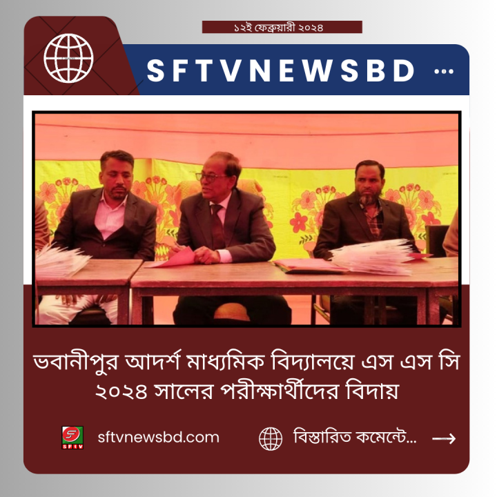 ভবানীপুর আদর্শ মাধ্যমিক বিদ্যালয়ের এস এস সি ২০২৪ সালের পরীক্ষার্থীদের বিদায় ও সংবর্ধনা অনুষ্ঠিত হয় ১২ ফেব্রুয়ারি রোজ সোমবার সকাল ১০ টায় ভবানীপুর আদর্শ মাধ্যমিক বিদ্যালয়ের মাঠে অনুষ্ঠিত হয়৷