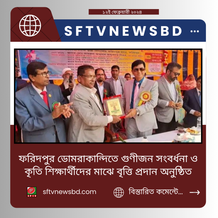 ফরিদপুর সদর উপজেলার ডোমরাকান্দি উচ্চ বিদ্যালয়ে গুণীজন সংবর্ধনা ও কৃতি শিক্ষার্থীদের মাঝে বৃত্তি প্রদান করা হয়।