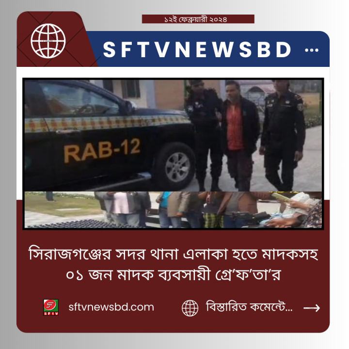 গ্রেফতারকৃত মাদক ব্যবসায়ীর বিরুদ্ধে আইনানুগ ব্যবস্থা গ্রহনের জন্য সিরাজগঞ্জের সদর থানায় একটি মামলা প্রক্রিয়াধীন রয়েছে বলে জানিয়েছেন স্কোয়াড্রন লীডার কোম্পানি কমান্ডার মোহাম্মদ ইলিয়াস খান