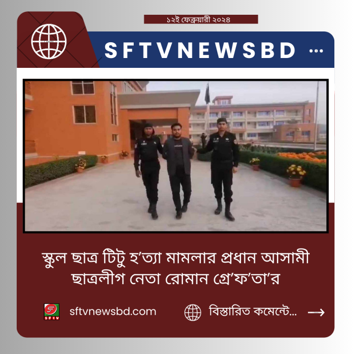 স্কুল ছাত্র টিটু হ’ত্যা মামলার প্রধান আসামী ছাত্রলীগ নেতা রোমান গ্রে’ফ’তা’র