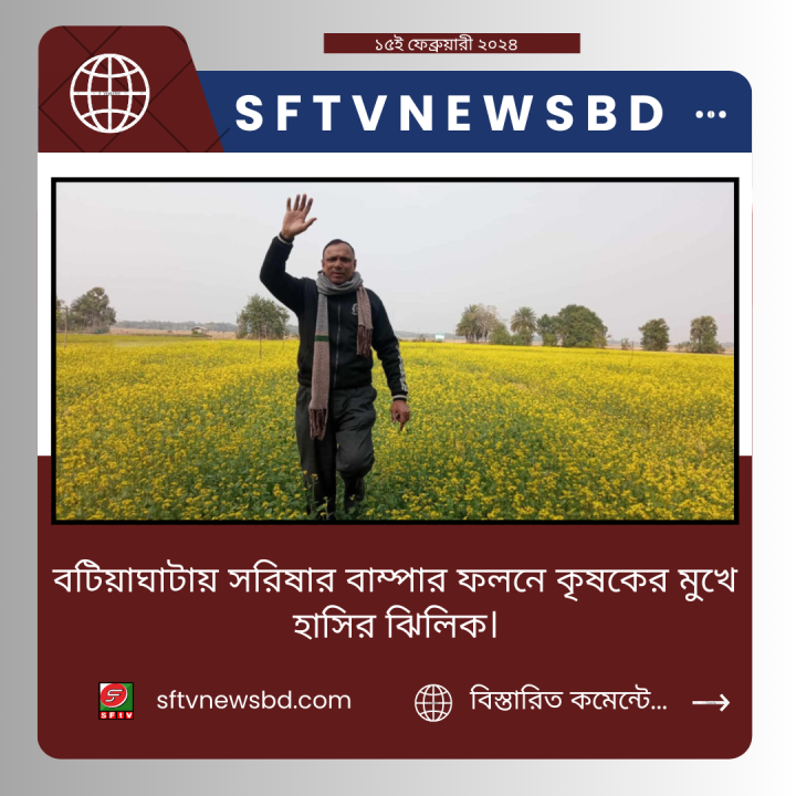 সরিষার বাম্পার ফলনে বটিয়াঘাটার কৃষকের মুখে হাসির ঝিলিক দেখা যাচ্ছে। সরিষার হলুদ ফুলে সেজেছে বটিয়াঘাটা উপজেলার বিভিন্ন অঞ্চল।