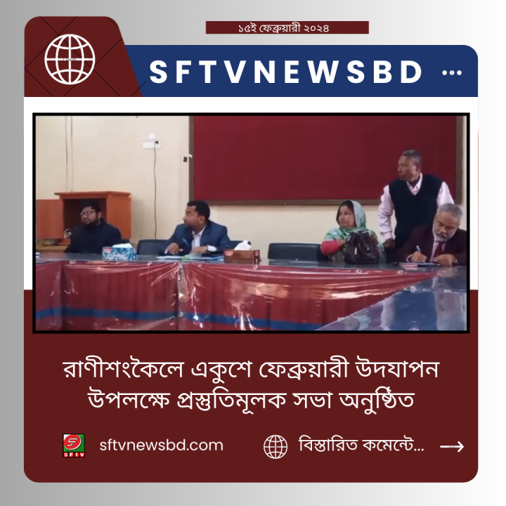 রাণীশংকর উপজেলা প্রশাসনের আয়োজনে ১৫ই ফেব্রুয়ারি সকাল এগারোটার সময় উপজেলা পরিষদ হল রুমেএকুশে ফেব্রুয়ারি উদযাপন উপলক্ষে এক প্রস্তুতিমূলক আলোচনা সভা অনুষ্ঠিত হয়।