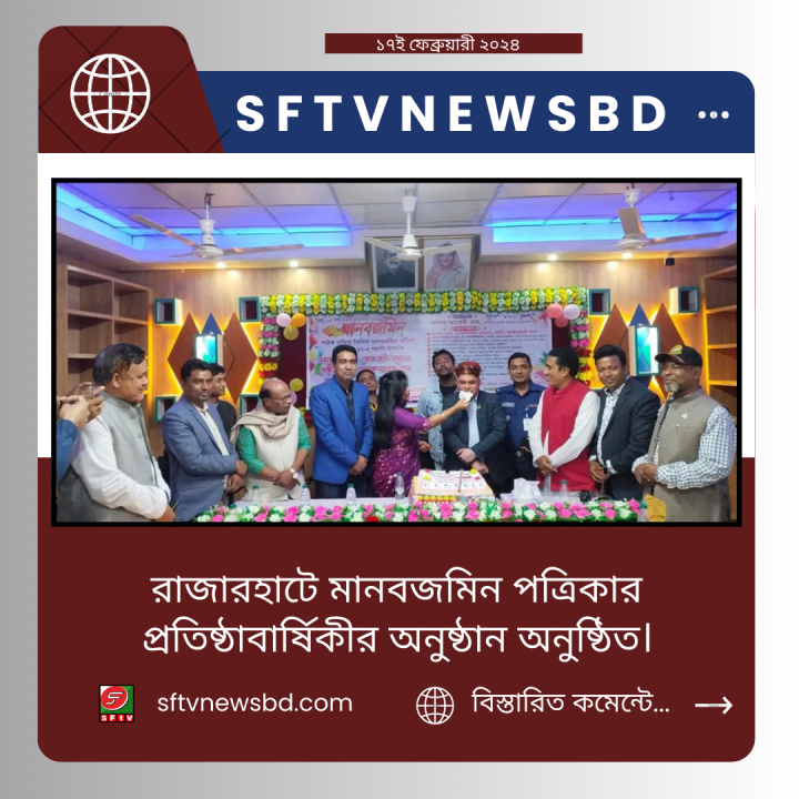 ১৭ ফেব্রুয়ারী বিকেলে উপজেলা পরিষদের হলরুমে দৈনিক মানবজমিন পত্রিকার রাজারহাট উপজেলা প্রতিনিধি ও প্রেসক্লাবের সাধারণ সম্পাদক মো. রফিকুল ইসলামের আয়োজনে দৈনিক মানবজমিন পত্রিকা ২৬ পেরিয়ে ২৭ -এ পদার্পণ উপলক্ষে অনুষ্ঠানের আয়োজন করা হয়।