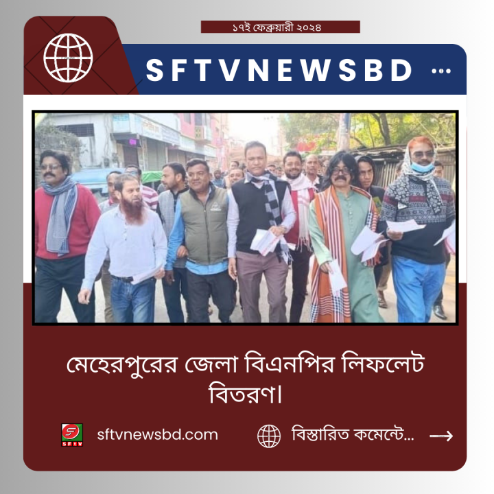 শনিবার সকালে মেহেরপুর শহরের বড়বাজার এলাকায় এ লিফলেট বিতরণ করা হয়।মেহেরপুর জেলা বিএনপির সভাপতি ও সাবেক সংসদ সদস্য মাসুদ অরুনের নেতৃত্বে শহরের বড়বাজার থেকে শুরু করে শহরের কাথুলি সড়ক পর্যন্ত লিফলেট বিতরণ করা হয়। এ সময় অন্যদের মধ্যে উপস্থিত ছিলেন মেহেরপুর জেলা বিএনপির সিনিয়র সহ সভাপতি জাভেদ মাসুদ মিল্টন, যুগ্ম সাধারণ সম্পাদক আব্দুর রহিম, সহ সংগঠনিক সম্পাদক জুলফিকার আলী ভুট্টো, মেহেরপুর পৌর বিএনপি’র সভাপতি জাহাঙ্গীর বিশ্বাস, জেলা যুবদলের সভাপতি জাহিদুল হক জাহিদ, সাধারণ সম্পাদক সাজিদুর রহমান বিপ্লব।