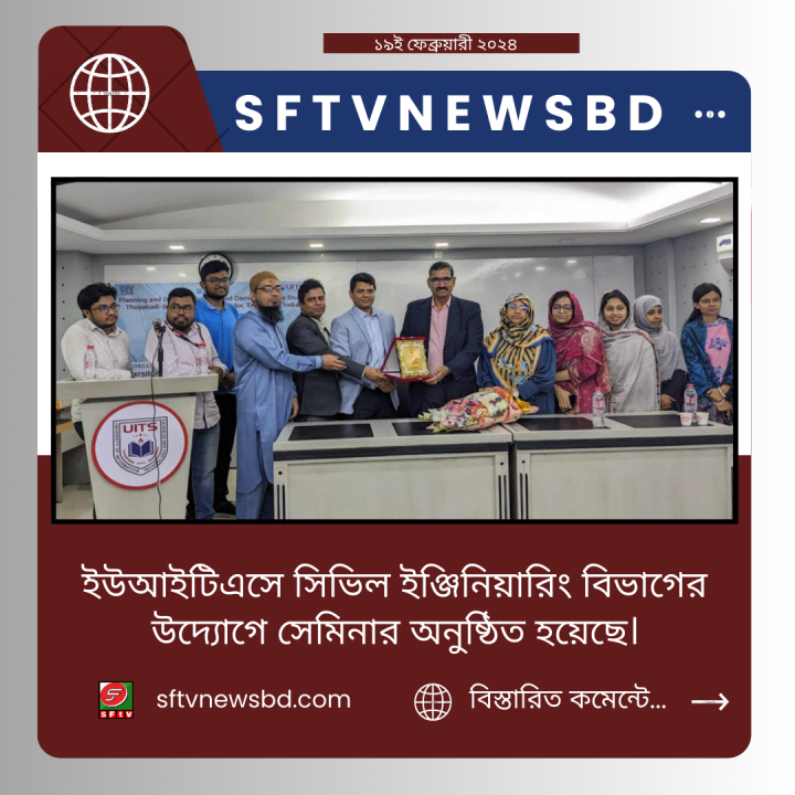 মোঃ হানিফ বিন রফিক প্রতিনিধি:আজ সোমবার (১৯ ফেব্রুয়ারি) ইউআইটিএস সিভিল ইঞ্জিনিয়ারিং বিভাগের উদ্যোগে এই সেমিনার অনুষ্ঠিত হয়।