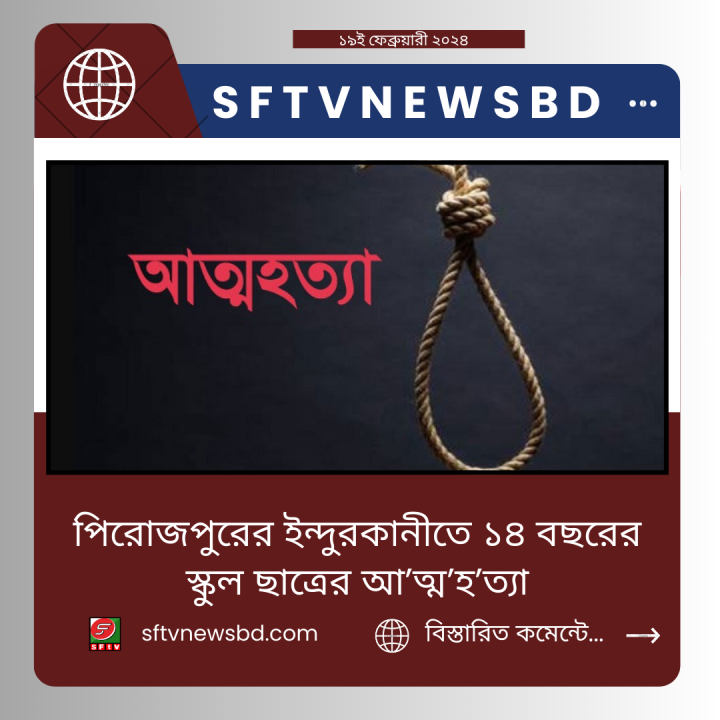 পিরোজপুরের ইন্দুরকানীতে শার্ট কিনে না দেওয়ায় বাবা-মায়ের সঙ্গে অভিমান করে মোঃ তুহিন শিকদার (১৪) স্কুলছাত্র আত্মহত্যা করেছে।