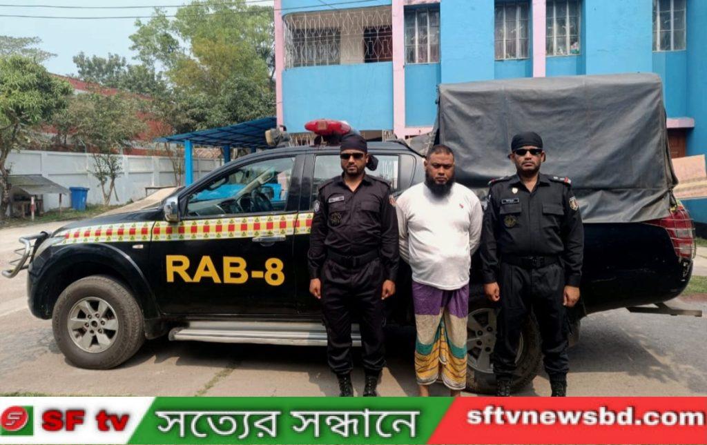 পটুয়াখালী র্যাব-৮, সিপিসি-১ জানান, পটুয়াখালী র্যাব-৮, সিপিসি-১ ও র্যাব-১, সিপিসি-১, এর একটি যৌথ অভিযানকারী দল সোমবার (১৯শে ফেব্রুয়ারী) বিকেল ৪:৪০ মিনিটের সময় দশমিনা উপজেলার আরোজবেগী এলাকায় অভিযান চালিয়ে মোঃ ওমর ফারুক রাশেদ ওরফে রাশেদুল চৌকিদার (৪০), পিতা-মৃত মোশারেফ চৌকিদার, মাতা- মোছাঃ মাকছুদা বেগম, সাং- আরোজবেগী, থানা-দশমিনা, জেলা- পটুয়াখালীকে গ্রেফতার করা হয়। ঘটনার বিবরণে জানা যায়, জামালপুর জেলার সরিষাবাড়ি থানার হাসড়া মাজালিয়া গ্রামের বাসিন্দা মোঃ আব্দুল কাদের ওরফে মধূ (৩৮) পেশায় ছিলেন একজন অটো চালক। প্রতিদিনের ন্যায় গত ২৩/১০/২০২৩ ইং তারিখ বিকেলে অটো রিক্সা নিয়ে বাড়ি হতে বাহির হয়। ঠিক সময় বাড়িতে না ফেরায় তার আত্বীয় স্বজনেরা তার ব্যাক্তিগত মোবাইল নম্বরে কল করলে তার মোবাইল ফোন বন্ধ পাওয়া যায়। অনেক খোঁজাখুজির, উক্ত জিডি তদন্তাধীন সময় পুলিশ নিখোঁজের পরিবারকে ঝিনাই নদীর পারে ভেসে আসা একটি অজ্ঞাত লাশের সন্ধান দেয়। পরবর্তীতে পরিবারের সদস্যরা উক্ত লাশ নিখোঁজ আব্দুল কাদেরের বলে সনাক্ত করে। লাশ পেলেও পাওয়া যায়নি অটোরিক্সা ও মোবাইল। পরিবারের সদস্যরা ধারণা করেন অজ্ঞাত ব্যক্তিরা যোগসাজসে তাকে হত্যা করে ঝিনাই নদীতে ফেলে দিয়ে অটোরিক্সা ও মোবাইল নিয়ে পালিয়ে গিয়েছে। পরবর্তীতে মৃত আঃ কাদেরের পরিবারের সদস্যরা অজ্ঞাত আসামিদের বিরুদ্ধে সরিষাবাড়ি থানায় একটি হত্যা মামলা দায়ের করে। যাহার মামলা নং-১৬/২৪৯, তারিখঃ ২৬/১০/২০২৩ইং, ধারাঃ ৩০২/২০১/৩৭৯/৩৪ দঃ বিঃ। উক্ত ঘটনা র্যাবের নজরে আসলে র্যাব আসামিদের সনাক্ত এবং গ্রেফতারের লক্ষে ব্যাপক ছায়া তদন্ত শুরু করে। এরই ধারাবাহিকতায় গ্রেফতারকৃত ওই আসামি কে গ্রেফতার করা হয়। এদিকে সিডিএমএস এবং পিসিপিআর পর্যালোচনা করে দেখা যায় যে, তার বিরুদ্ধে বিভিন্ন থানায় একাধিক মামলা রয়েছে। যেমন ১। বিএমপি এর কোতয়ালী থানার মামলা নং-১৯, তারিখ-০৮/০৩/২০১৭, জিআর-১৫২/১৭, ধারা-৪১৯/৩৭৯ পেনাল কোড, ২। দশমিনা থানার মামলা নং-০২/১২৮, তারিখ-০৩/১২/২০২০, ধারা-৩৭৯ পেনাল কোড, ৩। বাকেরগঞ্জ থানার মামলা নং-০৮, তারিখ-০৯/০৬/২০১৪, ধারা- ৩৭৯ পেনাল কোড এবং ৪। বাউফল থানার মামলা নং-০৮/২৮৮, ধারা-৩২৮/৩৭৯ পেনাল কোড। গ্রেফতারকৃত আসামিকে জামালপুর জেলার সরিষাবাড়ী থানায় পরবর্তী আইনগত ব্যবস্থা গ্রহণের জন্য হস্তান্তর করা হয়েছে। (২০/০২/২০২৪) পটুয়াখালী জেলার দশমিনা থানা এলাকা হতে জামালপুর জেলার সরিষাবাড়ী থানার ক্লুলেস হত্যা মামলার সাথে জড়িত, চেতনা নাশক দিয়ে অজ্ঞান করে সর্বস্য লুট, গুম ও লুটপাটের সাথে জড়িত ০১ জন পলাতক আসামী র্যাব-৮, সিপিসি-১, (পটুয়াখালী ক্যাম্প) এবং র্যাব-১, সিপিসি-১ এর যৌথ অভিযানে গ্রেফতার। র্যাব-৮, সিপিসি-১, পটুয়াখাল