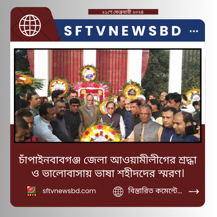 চাঁপাইনবাবগঞ্জ জেলা আওয়ামীলীগের শ্রদ্ধা ও ভালোবাসায় ভাষা শহীদদের স্মরণ।