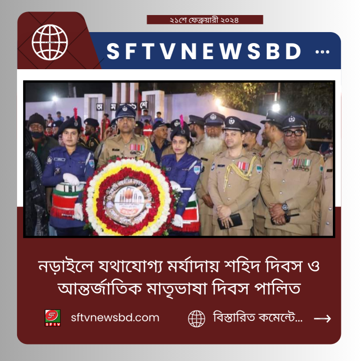 নড়াইলে যথাযোগ্য মর্যাদায় শহিদ দিবস ও আন্তর্জাতিক মাতৃভাষা দিবস পালিত।এসপি মেহেদী হাসান পুষ্পস্তবক অর্পণ করে।