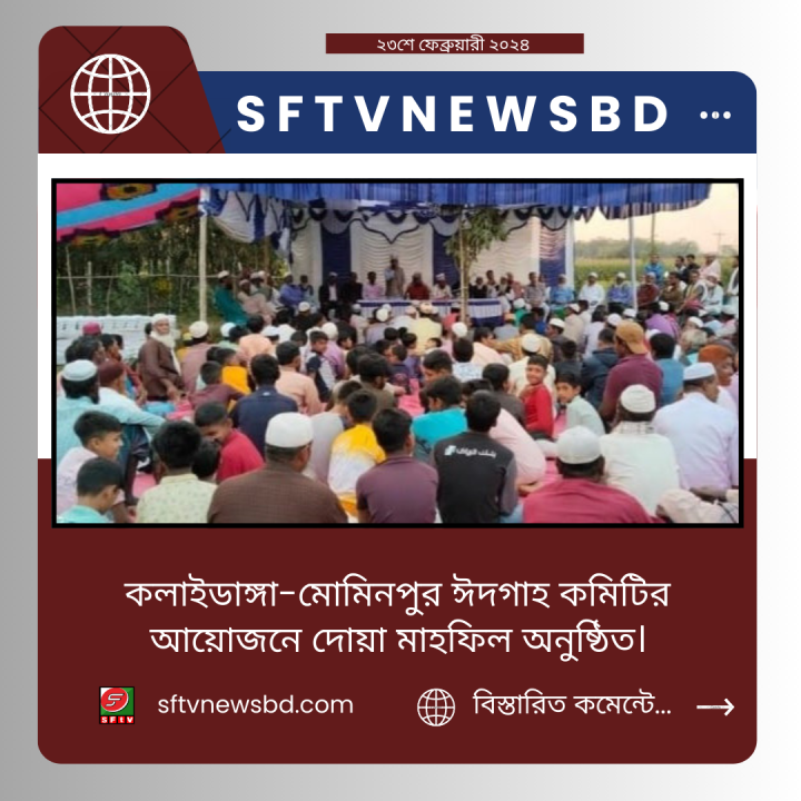 কলাইডাঙ্গা-মোমিনপুর ঈদগাহ কমিটির প্রয়াত সভাপতি আব্দুল হালিম মোল্লার আত্নার মাফফিরাত কামনায় দোয়া মাহফিল অনুষ্ঠিত হয়েছে।