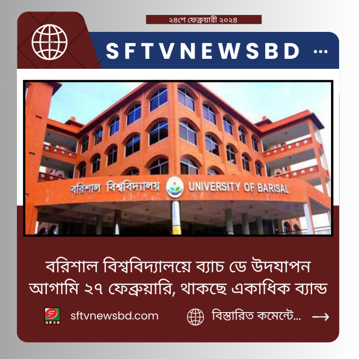 বরিশাল বিশ্ববিদ্যালয়ে (ববি) ব্যাচ ডে উদযাপন আগামি ২৭ ফেব্রুয়ারি।থাকছে বাংলাদেশের নাম করা একাধিক ব্যান্ড।