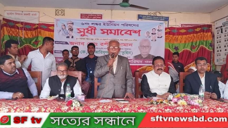 শনিবার সকাল ১১টায় ইউনিয়ন পরিষদের আয়োজনে উক্ত সুধী সমাবেশে প্রধান অতিথি হিসাবে উপস্থিত থেকে বক্তব্য প্রদান করেন ১০৪, (খুলনা-৬) আসনের সংসদ সদস্য জননেতা মোঃ রশীদুজ্জামান মোড়ল। প্রধান অতিথির বক্তব্যে তিনি বলেন নদী ও খাল খনন করে মিষ্টি পানির প্রবাহ সৃষ্টি করার মাধ্যমে মাছ ও ধান চাষ বাধ্যতামূলক করতে হবে।অত্র ইউনিয়নের বারবার নির্বাচিত চেয়ারম্যান কে এম আরিফুজ্জামান (তুহিন) এর সভাপতিত্বে অনুষ্ঠেয় সুধী সমাবেশে উপস্থিত ছিলেন পাইকগাছা উপজেলা চেয়ারম্যান ও উপজেলা আওয়ামীলীগের সভাপতি মোঃ আনোয়ার ইকবাল মন্টু, উপজেলা আওয়ামীলীগের সাধারণ সম্পাদক শেখ কামরুল হাসান টিপু, উপজেলা আওয়ামীলীগের সহ সভাপতি বাবু সমিরন কুমার সাধু, যুগ্ন সাধারণ সম্পাদক বাবু আনন্দ মোহন বিশ্বাস, লস্কর ইউনিয়ন আওয়ামীলীগের সদস্য সচিব বাবু বিভূতি ভূষণ সানা ও সংসদ সদস্যের ছোট ভাই যুবলীগ নেতা মোঃ ওয়াহেদুজ্জামান মোড়ল।