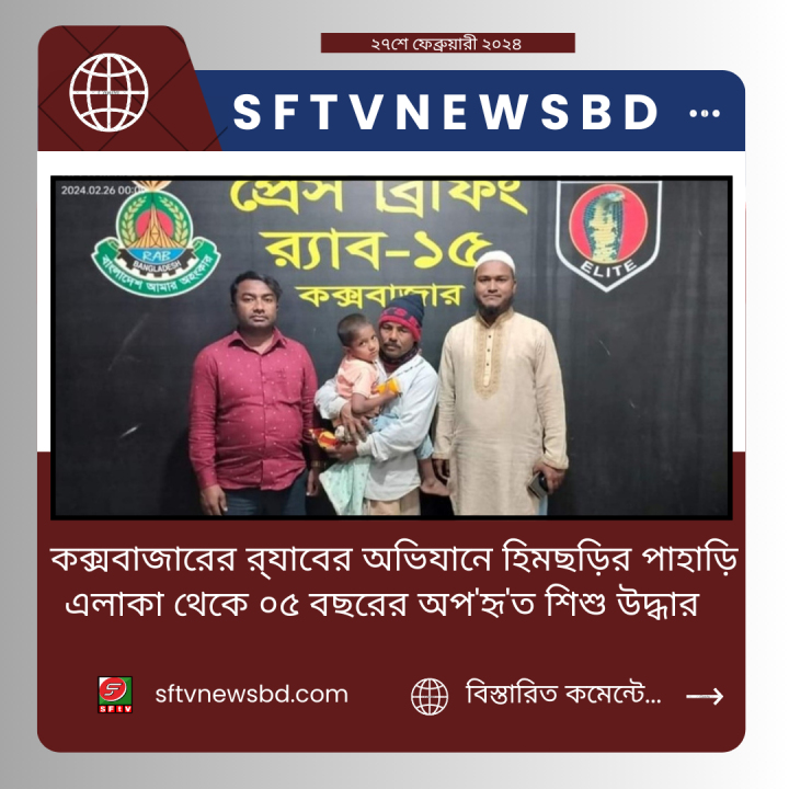 র্যাব-১৫, কক্সবাজার এর দায়িত্বপূর্ণ এলাকায় হত্যা, ধর্ষণ, অপহরণ, জঙ্গী দমন, অবৈধ অস্ত্র উদ্ধার, জলদস্যু, ডাকাত, চুরি-ছিনতাই, সন্ত্রাসী, চাঁদাবাজ ও মাদকসহ দেশে বিরাজমান নানাবিধ অপরাধ দমনে নিরলসভাবে কাজ করে যাচ্ছে।গত ১৮/০২/২০২৪ তারিখ অনুমান ১২.০০ ঘটিকার সময় কক্সবাজারের রামু থানাধীন জোয়ারিয়ানালা ইউনিয়নের ইলিশিয়া এলাকার শহর আলীর শিশুপুত্র শামীম সাঈদী’কে খাবারের প্রলোভন দিয়ে তার বাড়িতে আশ্রিত রাজমিস্ত্রী রাসেল রামু বাজারে নিয়ে যায়। পরবর্তীতে দিন ফেরিয়ে সন্ধ্যা হলেও বাড়ি ফিরে না এসে ভিকটিম পরিবারকে মোবাইলের মাধ্যমে জানায় যে, শামীম সাঈদী’কে অপহরণ করা হয়েছে এবং মুক্তিপণ হিসেবে পাঁচ লক্ষ টাকা দাবী করে। মুক্তিপণ না দিলে শিশু সাঈদীকে মেরে ফেলার হুমকি দেয়। ঘটনার পর থেকে ছেলেকে সম্ভাব্য সকল জায়গায় খোঁজাখুজি করে না পেয়ে ভিকটিমের বাবা রামু থানায় একটি মামলা দায়ের করেন, যার মামলা নং ৩৮/১১১, তারিখ ১৮/০২/২০২৪। এরই ধারাবাহিকতায় শিশু ভিকটিমকে উদ্ধারে কাজ শুরু করে র্যাব-১৫ এবং গত ২৬/০২/২০২৪ তারিখ রাত অনুমান ১২.৪৫ ঘটিকার সময় কক্সবাজার রামু থানাধীন হিমছড়ি এলাকার গহীন পাহাড়ি এলাকা থেকে ভিকটিম শিশু শামীম সাঈদীকে উদ্ধার করতে সক্ষম হয়। এ সময় র্যাবের উপস্থিতি বুঝতে পেরে ভিকটিমকে ফেলে রেখে অপহরণকারী রাতের অন্ধকারে গহীন পাহাড়ী এলাকায় পালিয়ে যায়। অপহরণকারী আসামী রাসেলকে গ্রেফতারে র্যাবের অভিযান অব্যাহত রয়েছে ।