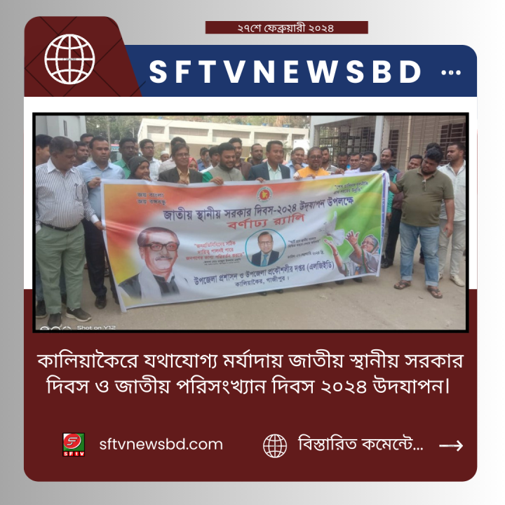 গাজীপুরের কালিয়াকৈর উপজেলায়, উপজেলা প্রশাসন, উপজেলা প্রকৌশলী দপ্তর এবং উপজেলা পরিসংখ্যান দপ্তর এর আয়োজনে, জাতীয় স্থানীয় সরকার দিবস ও জাতীয় পরিসংখ্যান দিবস ২০২৪ উদযাপন করা হয়েছে।