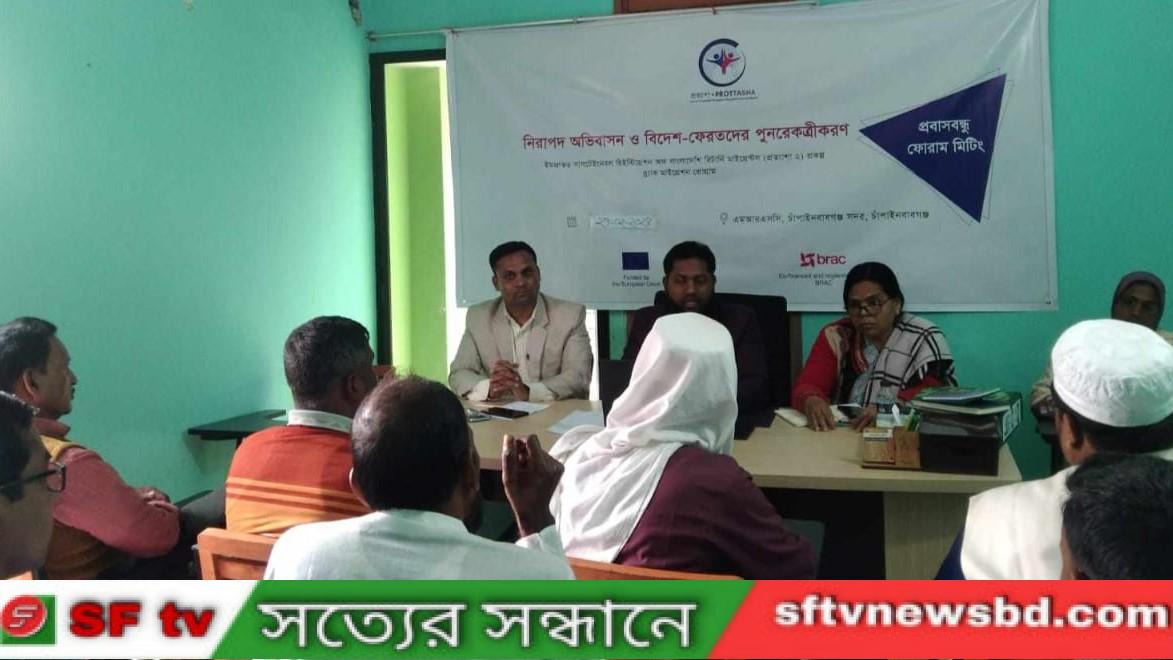 ইউরোপীয় ইউনিয়ন ও সর্ববৃহৎ বেসরকারি উন্নয়ন সংস্থা ব্র্যাক এর যৌথ অর্থায়নে এবং ব্রাক মাইগ্রেশন প্রোগ্রাম এর বাস্তবায়নে ইমপ্রুভড সাসটেনেবল রিইন্টিগ্রেশন অফ বাংলাদেশি রিটার্নী মাইগ্রেন্টস প্রত্যাশা (২) প্রকল্পের আওতায় নিরাপদ অভিবাসন ও বিদেশ ফেরতদের পুনরেকত্রীকরণ বিষয়কে সামনে রেখে উক্ত সভায় চাঁপাইনবাবগঞ্জ এমআরএসসিতে ৭ সদস্য বিশিষ্ট কার্যকরী কমিটি গঠন করা হয়। এই ফোরামের সভাপতি মোসা: নাজনীন ফাতেমা, সহ-সভাপতি মো:আকতারুল ইসলাম, সাধারণ সম্পাদক মোছা:আদুরী বেগম, সাংগঠনিক সম্পাদক মোঃ তৌফিকুল ইসলাম, তথ্য ও প্রচার সম্পাদক মোঃ জমশেদ আলী, সাধারণ সদস্য মোঃ আব্দুর রহমান, সদস্য বৃন্দুগণ হলেন মোঃ হুমায়ুন কবির, মো: রুবেল আলী, মো: তৈমুর রহমান, মোছাম্মদ নাজরীন, মোঃ নজরুল ইসলাম, মো:মিসবাহুল হক, মোঃ শফিকুল ইসলাম এমআরএসসি কো-অর্ডিনেটর মোঃ রেজাউল করিম, ব্র্যাক জেলা সমন্বয়ক মোসা: মোমেনা খাতুন, প্রোগ্রাম অর্গানাইজার মোঃ জিন্নাত আলী। মিটিং-এ সকলেই তাদের মূল্যবান মতামত ব্যক্ত করেন। প্রবাস বন্ধু ফোরাম মিটিংটি সঞ্চালনা করেন মোঃ রেজাউল করিম এমআরএসসি কো-অর্ডিনেটর ব্রাক মাইগ্রেশন প্রোগ্রাম চাঁপাইনবাবগঞ্জ। তিনি এবং চাঁপাইনবাবগঞ্জ সদর উপজেলার প্রোগ্রাম অর্গানাইজার মোঃ জিন্নাত আলী ব্র্যাক মাইগ্রেশন প্রোগ্রাম এর পক্ষ থেকে প্রত্যাশা ২ প্রকল্প নিয়ে বিশদভাবে আলোচনা করেন। বিদেশ ফেরত অভিবাসীদের জন্য ব্র্যাক মাইগ্রেশন প্রোগ্রাম প্রত্যাশা ২ প্রকল্পের মাধ্যমে নিরাপদ অভিবাসন নিশ্চিতকরণ, বিদেশ ফেরত অভিবাসীদের মনোসামাজিক কাউন্সিলিং, সামাজিক পুনরেকত্রীকরণ, বিভিন্ন প্রশিক্ষণ ও রেফারেল সেবা প্রদান করবে তা প্রবাস বন্ধু ফোরাম মিটিং এ উপস্থিতির মাঝে তুলে ধরা হয় এবং বিদেশ ফেরত অভিবাসীদের ব্রাক মাইগ্রেশন প্রোগ্রাম চাঁপাইনবাবগঞ্জ এমআরএসসি এর সাথে যোগাযোগ করার জন্য আহ্বান জানানো হয়।এছাড়াও ফোরাম কার্যকরী কমিটি ও সাধারণ সদস্যদের দায়িত্ব ও কর্তব্য সম্পর্কে আলোচনা করা হয়। সবশেষে নবনির্বাচিত ফোরামের সহ- সভাপতি সবাইকে ধন্যবাদ ও আগামী মিটিং এ উপস্থিত হওয়ার আহ্বান জানিয়ে মিটিং এর সমাপ্তি ঘোষণা করেন।