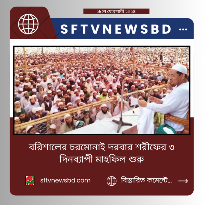 বরিশালের চরমোনাই দরবার শরীফের তিন দিনব্যাপী বার্ষিক মাহফিল শুরু হচ্ছে ২৮ শে ফেব্রুয়ারী বুধবার।