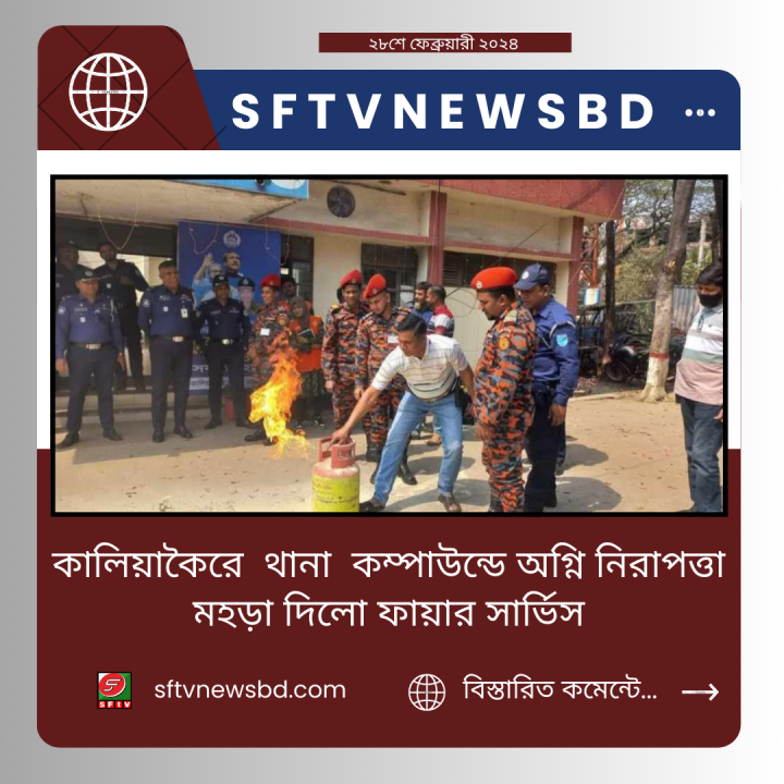 বুধবার সকালে কালিয়াকৈর ফায়ার সার্ভিস ও সিভিল ডিফেন্স এ মহড়া দেয়।ফায়ার সার্ভিস ও পুলিশ সূত্রে জানা গেছে, গাজীপুরের কালিয়াকৈর থানা পুলিশ প্রতি বছর অগ্নি নিরাপত্তা সংক্রান্ত মহড়া দেওয়া হয়। এর ধারাবাহিকতায় বুধবার বেলা ১১টার দিকে থানা কম্পাউন্ডে এ মহড়া দেওয়া হয়েছে। কালিয়াকৈর ফায়ার সার্ভিস ও সিভিল ডিফেন্সের একটি টিম অগ্নি নিরাপত্তা সংক্রান্ত মহড়া সম্পন্ন করে। কালিয়াকৈর ফায়ার সার্ভিস ওয়্যার হাউজ ইন্সপেক্টর ইফতেখার রায়হান চৌধুরীর নেতৃত্বে এ মহড়া দেওয়া হয়। এসময় থানার অফিসার ও ফোর্স ওই মহড়ায় অংশগ্রহণ করে। এসময় উপস্থিত ছিলেন- কালিয়াকৈর থানার ওসি এ এফ এম নাসিম, তদন্ত ওসি সাব্বির রহমান, ওসি অপারেশন যোবায়ের হোসেন, সেকেন্ড অফিসার আজিম হোসেনসহ থানার অন্যান্য অফিসারসহ সকল পুলিশ সদস্য ও ফায়ার সার্ভিসের কর্মীরা।