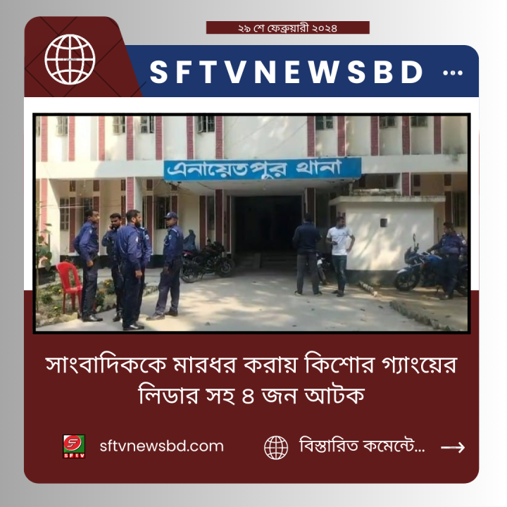 আশিকুল ইসলাম সিরাজগঞ্জ প্রতিনিধি:এনায়েতপুরে মেয়েকে ইভটিজিং এর প্রতিবাদ করায় সাংবাদিককে মারধর, কিশোর গ্যাংয়ের লিডার সহ ৪ জন আটক।
