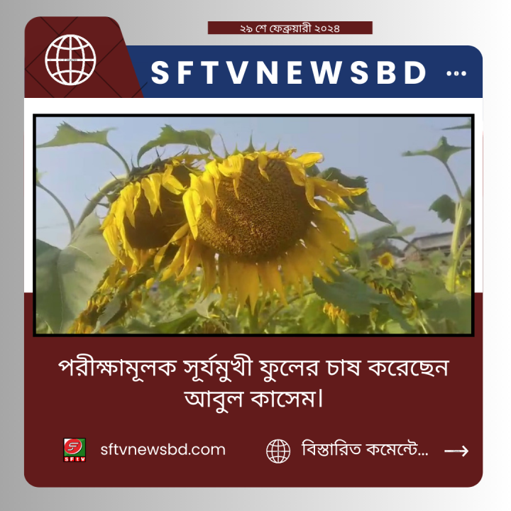 সিরাজগঞ্জের শাহজাদপুর উপজেলার রূপবাটি ইউনিয়নের সাবেক ইউপি সদস্য আবুল কাশেম পরিক্ষা মূলক ভাবে ২২ শতাংশ জমিতে সূর্যমুখী ফুলের চাষ করেছেন ফলন ও বেশ ভালো হয়েছে উপজেলা কৃষি সম্প্রসারণ অধিদপ্তর থেকে এর বীজ সরবরাহ করা হয়েছে এবং এই ফুল চাষে উদ্বুদ্ধ করা হয়েছে বলা জানান আবুল কাশেম । প্রতিদিন দূরদূরান্ত থেকে ভ্রমণ পিপাসু মানুষ ছুটে আসছেন আবুল কাশেমের সূর্যমুখী ফুলের সৌন্দর্য উপভোগ করতে এবং এলাকার কৃষকের মাঝেও বেশ আগ্রহ জন্মেছে তারা আগামীতে সূর্যমুখী ফুল চাষে আগ্রহ দেখাচ্ছেন। আপনিও যদি আবুল কাশেমের এই সূর্যমখী ফুলের সৌন্দর্য উপভোগ করতে চান তবে যেভাবে যাবেন সেখানে , শাহজাদপুর পৌর শহরের পূর্বপাড়ে করতোয়া সেতু পার হয়ে হাবিবুল্লাহ নগর ইউনিয়ন এর নগরডালা বাজার, সেখান থেকে অটোভ্যানে রতনকান্দী বাজার হয়ে আপনাকে যেতে হবে রূপবাটি ইউনিয়নের চর আন্ধারমানিক নামক গ্রামে সেখানে বাঁধের দক্ষিণ পাশে সাবেক ইউপি সদস্য আবুল কাশেম এর বাড়ির পাশে আবাদি জমিতে সোভাপাচ্ছে সূর্যমুখী ফুল, ফুলগুলো দক্ষিণা বাতাসে দোল খাচ্ছে আর নানা প্রকার পাখির গাছের ডালে বসে কিচির মিচির শব্দে এক মনোমুগ্ধকর পরিবেশের সৃষ্টি হয়েছে সেখানে।