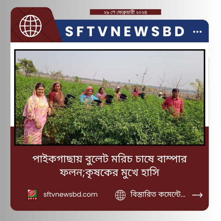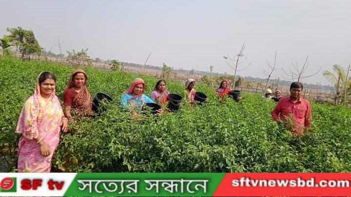 এরই ধারাবাহিকতায় গড়ইখালীতে স্মার্ট প্রযুক্তি’র মরিচ চাষে প্রধান শিক্ষক সঞ্জয়-অর্পনা দম্পত্তি’র ক্ষেতে বাম্পার ফলন হয়েছে। হোগলারচকের বাসিন্দা শিক্ষক দম্পতি সঞ্জয় মন্ডল-অর্পনা ইতোমধ্যে তাদের ৯ কাঁঠা জমির মরিচ ক্ষেত থেকে দু’দফায় ৩৯ মন বুলেট মরিচ হারবেস্টিং করেছেন। যার বিক্রয় মূল্য ১লক্ষ্য ২৭ হাজার ৯৫৫ টাকা।উপজেলা কৃষি অধিদপ্তর সুত্রে জানাগেছে, রবি মৌসুমে উপজেলার গড়ইখালী ইউনিয়নের হোগলারচক, কুমখালীসহ কয়েকটি স্থানে ৫ হেক্টর জমিতে হাইব্রিড মরিচ চাষ হচ্ছে। ক্লাইমেট স্মার্ট প্রযুক্তিতে মালচিং পেপার ব্যবহার করে কৃষকরা লবন সহিষ্ণু বুলেট মরিচ ও সুপার মরিচ চাষে ঝুঁকে পড়েছেন। এ চাষ পদ্ধতিতে তেমন ঝুঁকি নেই,নেই রোগ বালাই। পানি সেচ কম লাগে,তাপমাত্রাও ধারণ করতে পারে। সে জন্য ফলনও খুবই ভালো হয়।এ বিষয়ে কুমখালীর মাধ্যমিক বিদ্যালয়ের প্রধান শিক্ষক সঞ্জয় মন্ডল জানান, মূলত আমরা কৃষক পরিবারের মানুষ। শিক্ষকতার পাশাপাশি স্বামী-স্ত্রী’র নিজস্ব চিন্তা-ভাবনায় এ মৌসুমে ২বিঘা ৫ কাঁঠায় হাইব্রিট মরিচ সুপার ও ৯ কাঁঠা জমিতে বুলেট মরিচের চাষ করেছি। এখন কৃষি বিভাগের উপ-সহকারীরা ক্ষেত পরিদর্শন করে পরামর্শ দিয়ে যাচ্ছেন। তিনি এ প্রতিনিধিকে জানান, ৯ কাঁঠার বুলেট মরিচ ক্ষেতে এ পর্যন্ত তার ব্যয় হয়েছে-৩৯ হাজার ২শত টাকা। ইতোমধ্যে দু’বার হারবেস্টিং করেছি। গত ২২ জানুয়ারি ১৪ মন ও ২১ফেব্রুয়ারিতে-২৪ মন ৩০ কেজি। যার বিক্রয় মূল্য ১ লাখ ২৭ হাজার ৯৫৫ টাকা। এ দম্পত্তি আশা করেন বড় ধরনের প্রাকৃতিক দুর্যোগ না হলে এ ক্ষেত থেকে এখনো ৬ বার মরিচ তুলতে পারবেন। সব মিলিয়ে বিক্রয় হবে প্রায় ৫ লাখ টাকা।এ বিষয়ে উপজেলা কৃষি অফিসার কৃষিবিদ অসীম কুমার দাশ জানান, ক্লাইমেট স্মার্ট প্রযুক্তিতে গড়ইখালীতে ৫ হেক্টর জমিতে হাইব্রিড মরিচের আবাদ করা হয়েছে। লবন এলাকায় মিষ্টি পানি সংরক্ষণ করে হোগলারচকের স্মার্ট মরিচ চাষি মলয় ও শিক্ষক দম্পত্তি সঞ্জয়-অর্পনা’র লাভ জনক মরিচ চাষ প্রযুক্তি অন্যান্য কৃষকের জন্য উদাহরণ হতে পারে। তিনি আরো বলেন, আমরা উপজেলা কৃষি অফিস থেকে কৃষকদের সর্বোচ্চ সহযোগিতা অব্যহত রেখেছি।